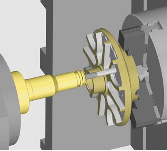 Під час виконання кількох операцій на одній деталі одночасно (наприклад, двома або більше інструментами) система визначає головний канал управління, відповідальний за координацію спільного шпинделя або обертових осей. Це гарантує точну синхронізацію всіх рухів і запобігає можливим колізіям. Завдяки цим можливостям ESPRIT формує повністю оптимізовану програму, яка синхронізує всі цикли обробки з переміщенням деталі та зміною технологічних етапів:
